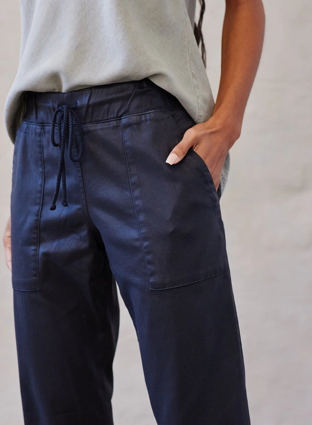 Faux leather pocket joggers are not your ordinary joggers. These will become your new favorite faux leather pants! They are super comfortable and chic. Dress them down with sneakers or elevate them with heels or boots. The design features a drawstring waistband, side pockets and back pockets and an overall relaxed fit. Made with 60% Tencel, 38% Cotton, and 2% Spandex.