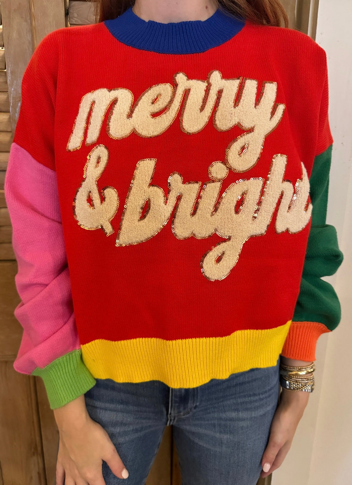 Colorblock Fuzzy Merry & Bright Sweater