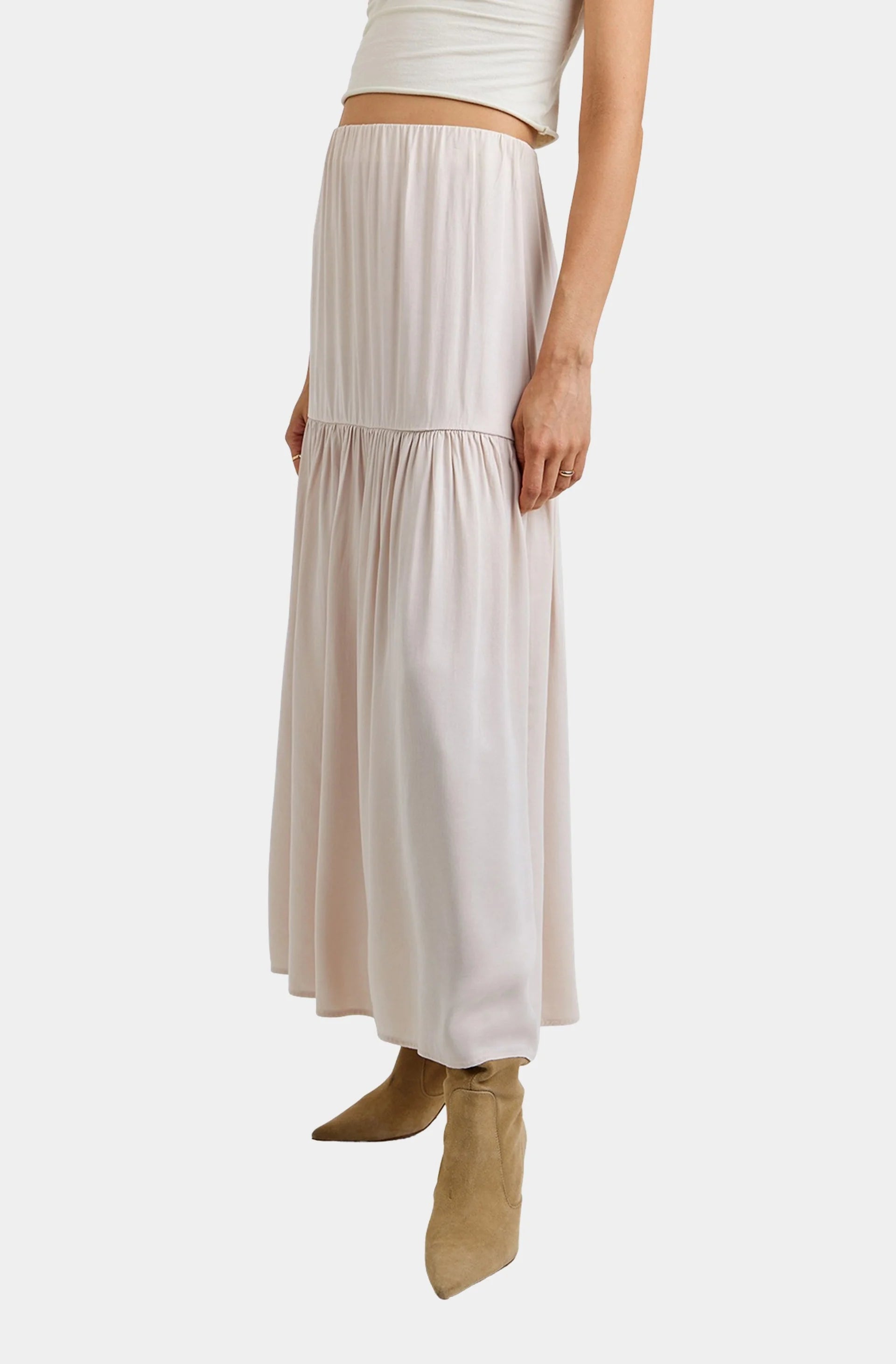 Dropped Waist Ruffle Maxi Skirt Frost