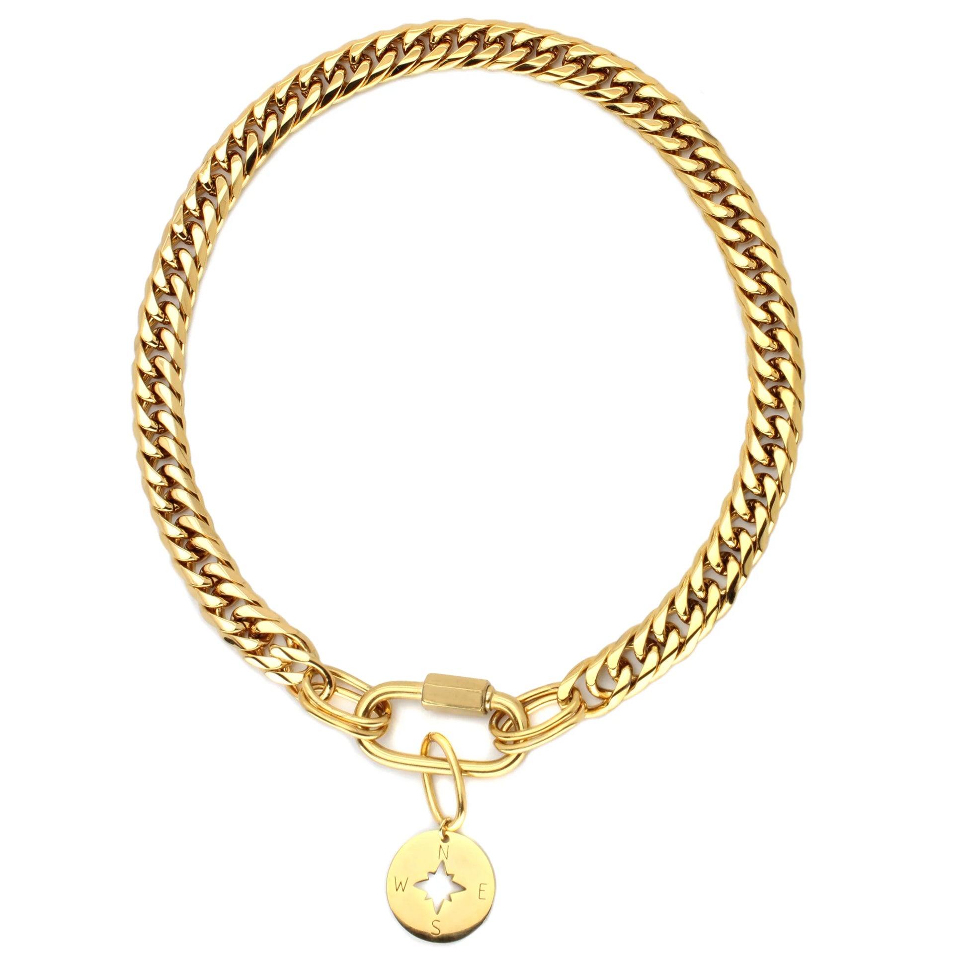 - Chunky Compass Pendant: Chunky Chain and Carabiner Clasp (18K Gold Plated Stainless Steel), Medium Gold Compass Pendant