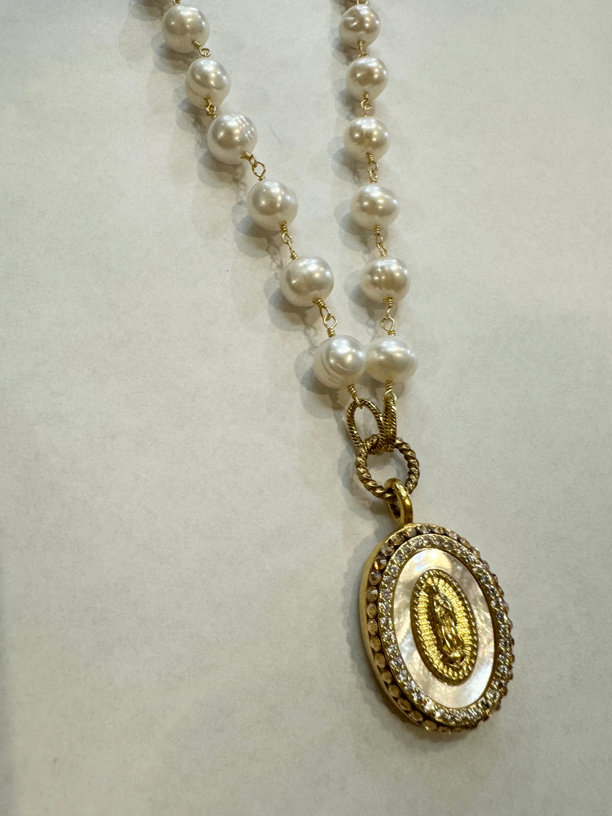 Fresh Water Pearl Miraculous Mary Oval Necklace