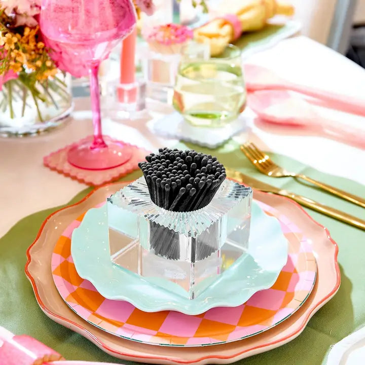 Meet your new flame! Our chic square acrylic match striker is as functional as it is fabulous. Each one comes ready to light with 140 colorful matches and a built-in striker pad on the bottom of the vessel. Designed to double as décor, it’s the perfect little luxury for your coffee table, vanity, or next to your favorite candle. Refillable, reusable, and ridiculously cute - because even lighting a candle should spark joy.