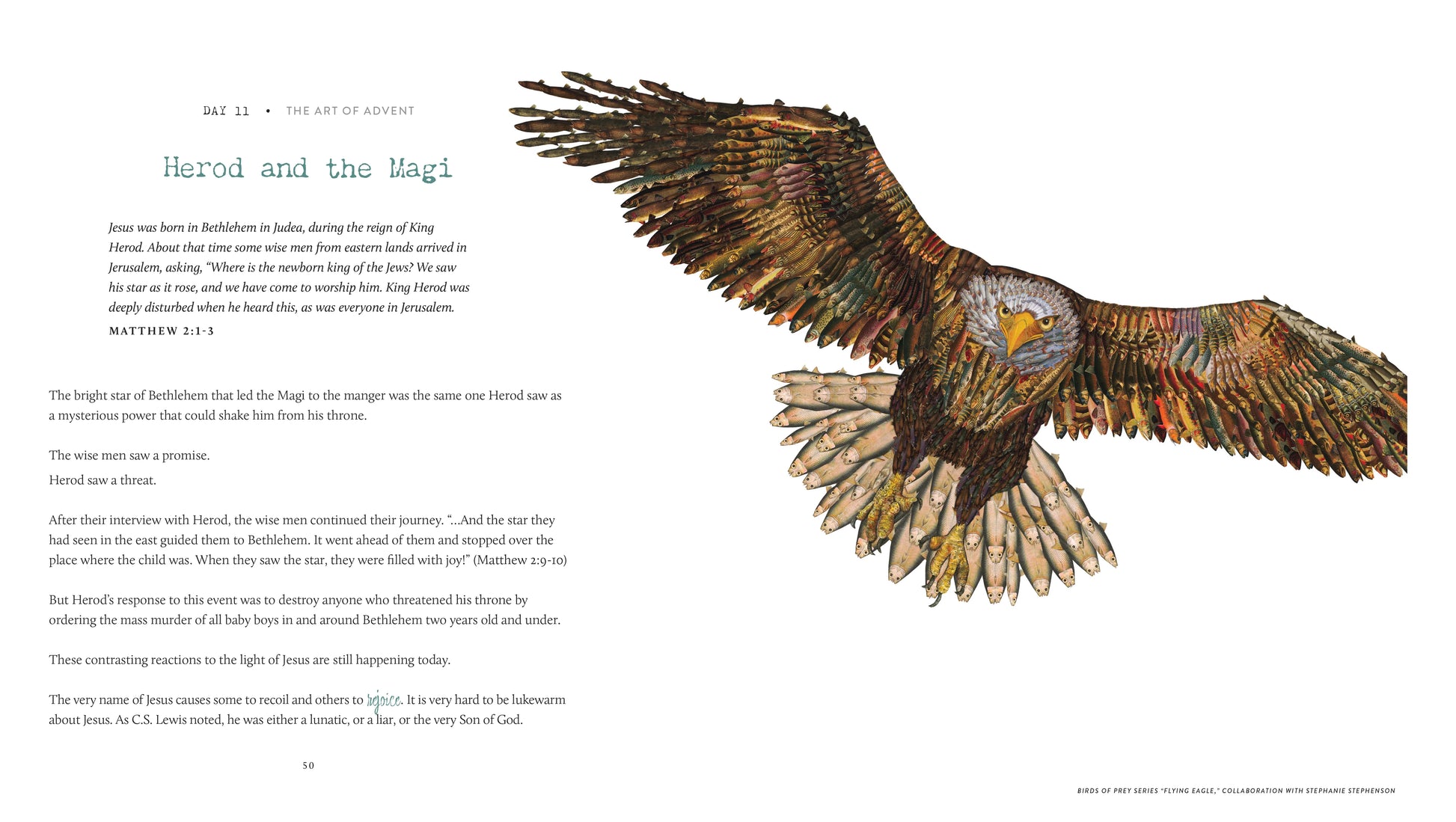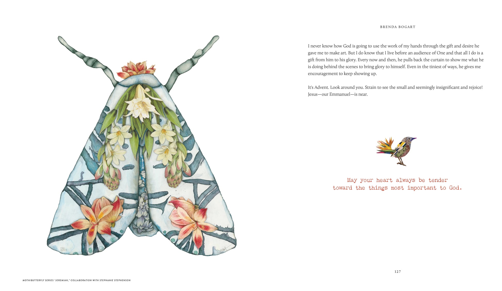 This book is a 40-day journey through the Advent season with art, scriptures, and the written word. “Advent” simply means the arrival of a notable person, thing, or event. Christmas is the advent of Jesus Christ into the world. Your world. And mine. I encourage you to set aside time for the 40 days leading up to Christmas Day to prepare your heart and mind for this special season. May this book inspire and encourage you anytime of the year and become an experience you can enjoy over and over again.
